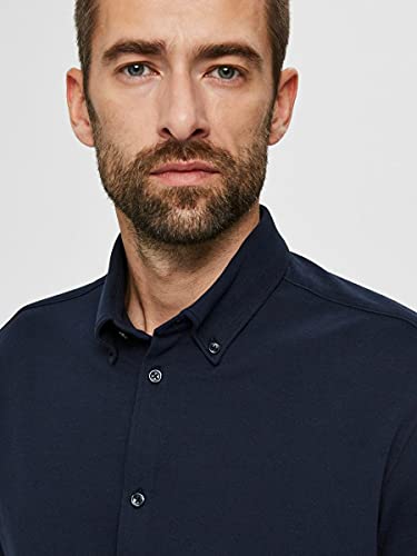 SELECTED HOMME SLHSLIMOLIVER-Knit Flex Shirt LS B Noos Camicia Button-Down, Dark Sapphire, Small Uomo