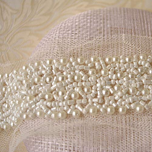 Selene Pearl Beaded Trim, Wedding Trim, Jewelry Trim, Wedding Trim di Abito, Fusciacche da sposa, scarpe da sposa, artigianato, Epaulette Strass (#10, 2 iarde)