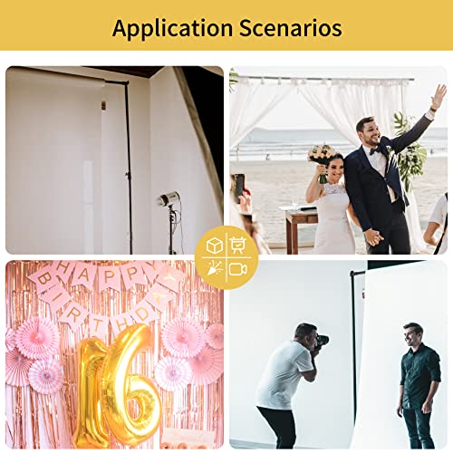 Supporto per sfondo asta trasversale: il supporto può essere regolato da 120 cm a 300 cm, che soddisfa diverse esigenze. Adatto per ritratti di prodotti per feste, mobili, scene ecc. Soddisfa le tue esigenze di registrazione per diverse scene.