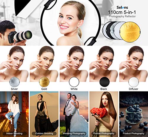 Selens - Riflettore pieghevole 5 in 1, con impugnatura e custodia, colore: bianco/nero/oro/argento