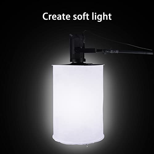 Softbox cilindrico - rende la luce più morbida e uniforme. Con un panno ombreggiante è possibile controllare la portata della luce. Il telo ha un interno argentato che riflette la luce attraverso il lato aperto e garantisce la massima luminosità ed efficienza luminosa. Ideale per studio fotografico, video e ritratto del prodotto.