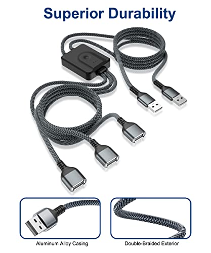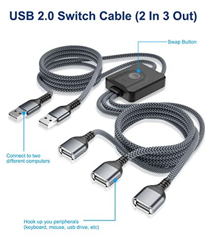 Cavo Selettore Interruttore USB 2.0,Adattatore Switcher Porta 2 in 3 out per due Computer,Switcher Condivisione KVM con Pulsante di Scambio per Stampante PC,Scanner,Mouse,Tastiera,Flash Drive,Web Cam