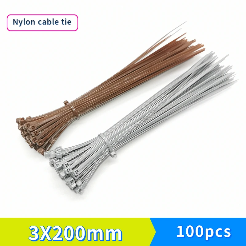 Self-locking nylon cable ties 3X200 brown silver-gray plastic strapping strip width 2.7 mm 100 pcs / pack