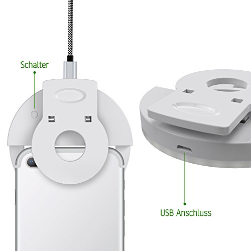 3 livelli di luce: questo anello selfie luce dispone di 3 livelli di luce. Premere il bottone, per ottenere un' intensità luminosa al vostro ungebung.