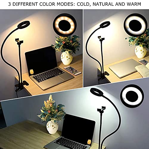 2in 1 LED Selfie Ring Light with Cell Phone Holder Adjustable Desk Lamp for Live Stream