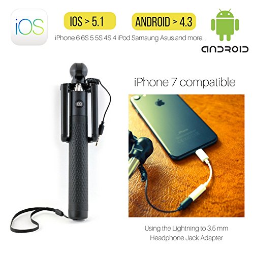 Selfie Stick Android e iPhone [GLOBE STICK] - Bastone Telescopico Universale per Foto e Selfie con Presa Jack da 3,5mm - Compatibile IOS Android iPhone 6 6S 5S 5 4S Samsung - Garanzia a Vita