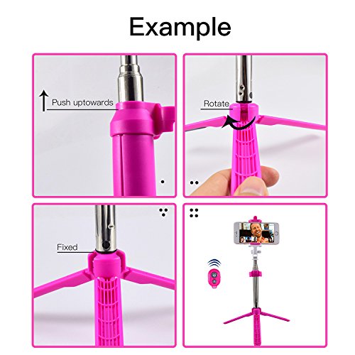 Selfie Stick Bluetooth, Alfort Selfie Stick Espandibile con Telecomando, Selfie Stick Integrato con Treppiede, Adatto per Telefoni Cellulari Entro 5,5 Pollici (Rosa)