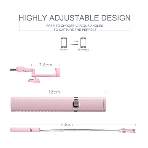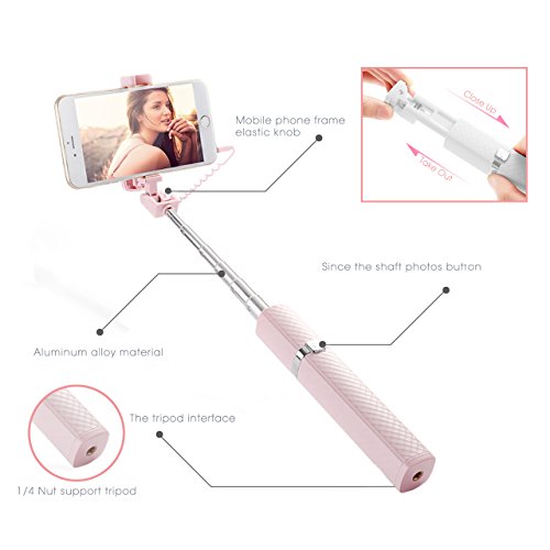 Selfie stick Shanhe versione 2017 portatile estensibile con controllo (no bluetooth) per smartphone iphone ios (no versione inferiore 5.0) e Android (no versione inferiore 4.2.2) - Rosa