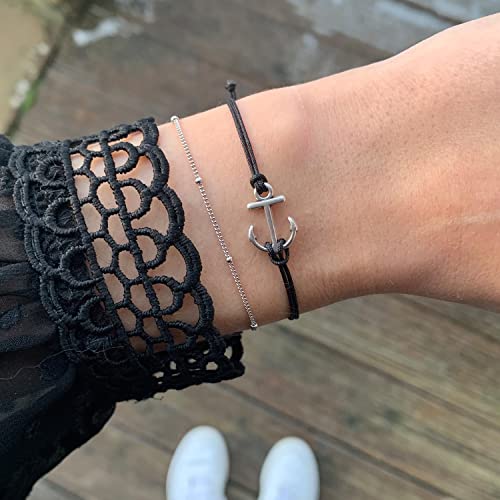 Selfmade Jewelry Bracciale Con Ancora In Argento Nero per Donna - Bracciale Regolabile In Macrame Con Ciondolo a Forma di Ancora (Argento Nero)(Taglia Regolabile)