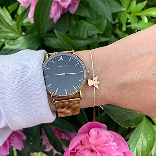Selfmade Jewelry Bracciale Angelo Custode per Donna, Misura Regolabile Fino A Circa 21 Cm (Oro Rosa - Beige)(21 centimetri)