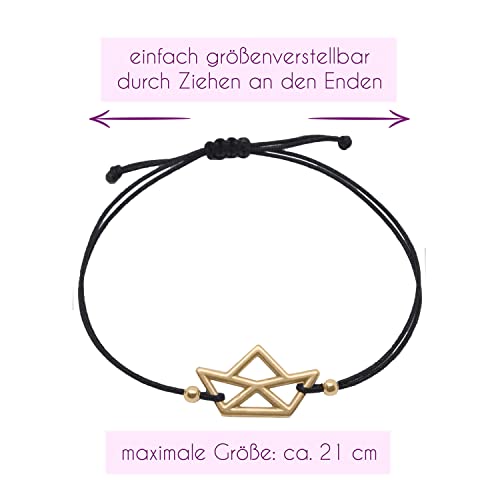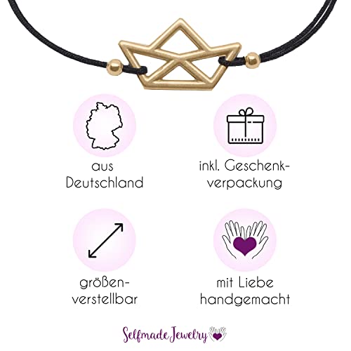 Selfmade Jewelry Bracciale Barca Oro Rosa per Donna, Bracciale Macrame regolabile fatto a mano in Germania Inclusa confezione regalo (Oro Rosa)(16 cm)