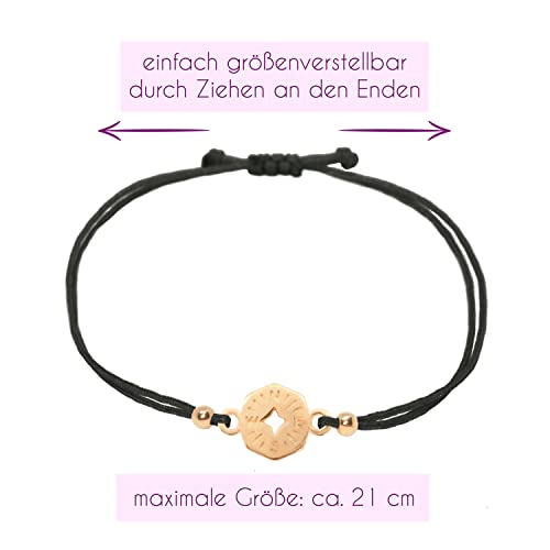 Selfmade Jewelry Bracciale Bussola Oro Rosa per donna, Bracciale macrame fatto a mano Misura regolabile Inclusa confezione regalo (Nero)(Moderno)