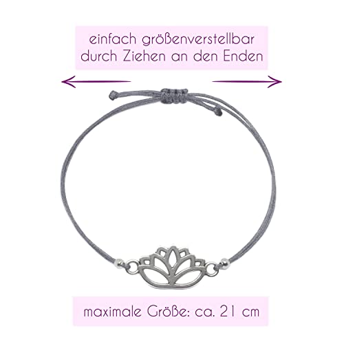 Selfmade Jewelry Bracciale Lotus per donna, bracciale macrame regolabile con fiore di loto fatto a mano Incl. confezione regalo (Argento)(19 cm)(Moderno)