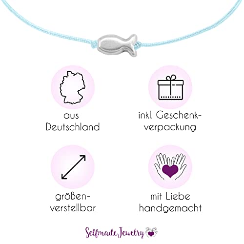 Selfmade Jewelry Bracciale Pesce d'Argento per Donna, Bracciale Macrame Regolabile Con Pesce Fatto a Mano Inclusa Confezione Regalo (Argento - Azzurro)(Taglia regolabile)