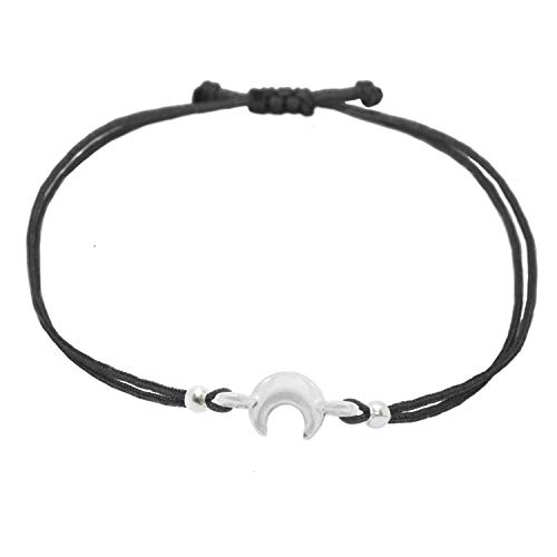 Selfmade Jewelry Braccialetto con luna e ciondolo a mezzaluna, misura regolabile, realizzato a mano, con confezione regalo e base metal, colore: argento/nero, cod. 0082