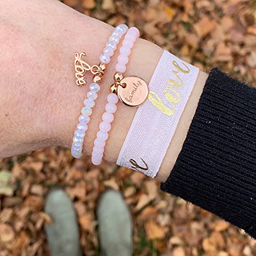 Selfmade Jewelry Set di bracciali Love in tessuto elastico Bracciali e lacci per capelli fatti a mano per donna (rosa, blu, oro)(pezzi (Confezione da 1))