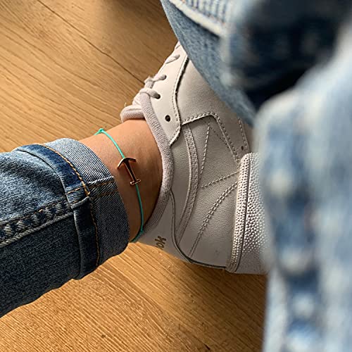 Graziosa cavigliera da donna: splendida cavigliera con ancora in oro rosa su nastro turchese