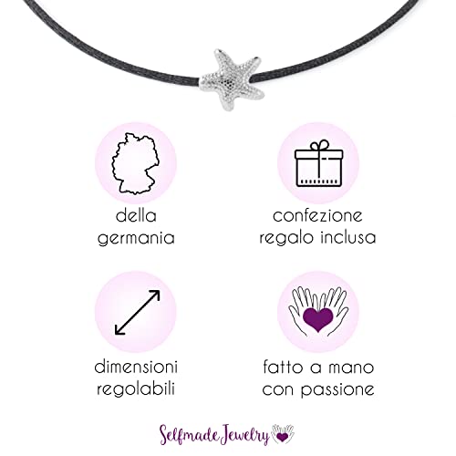 Selfmade Jewelry Cavigliere Gioiello In Nastro Di Raso Nero Con Stella Marina In Argento Fatte A Mano (Argento Nero)(Taglia Regolabile)