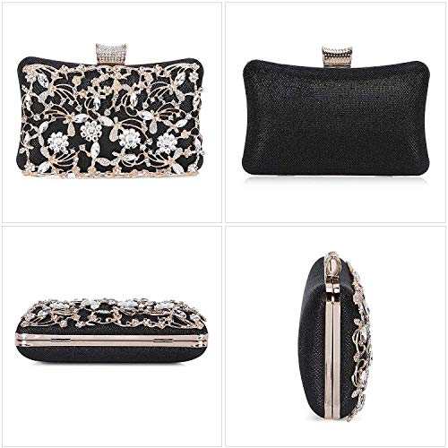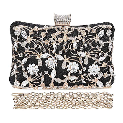 Selighting Donna Pochette Argento da Cerimonia Pochette da Sera Sacchetto Elegante Borsetta da Sera Bling Diamante Fatto a Mano (nero)