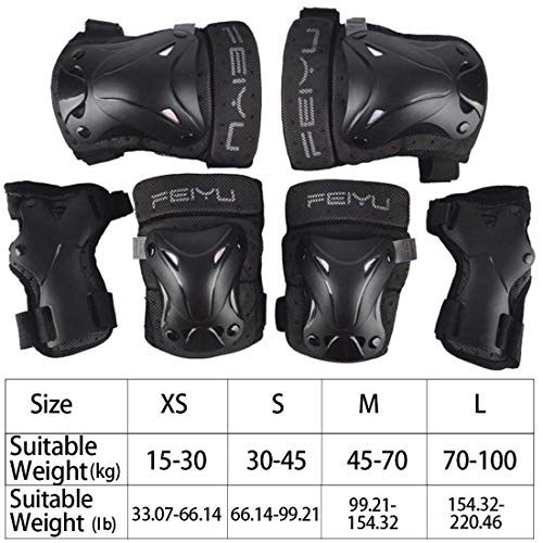 Selighting Ginocchiere, Ginocchiere Bambini Bambini Kit Protezione Set di ginocchiere, gomitiere, polsiere per ragazzi & ragazze per pattini in linea, skate, sport, 6PCS (M, Nero)