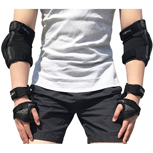 【Pad protezione di alta qualità】--Progettato per la sicurezza e il comfort.Gomito, ginocchio e polso 6 pezzi al set, ti offrono protezione a 360 ° e perfetta mentre fai sport.Molteplici cinghie elastiche regolabili e chiusure in velcro per una vestibilità sicura per varie ginocchiere.