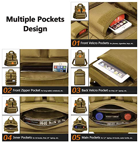 Selighting Tactical Briefcase MOLLE Military Outdoor Shoulder Messenger Engineers Bag Handbags Borsa a Tracolla Sling Crossbody Bag Tattica Porta Laptop 12" (nero)