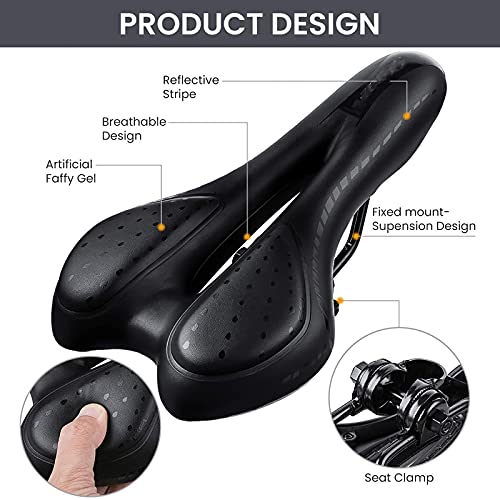 [Sella per bicicletta di alta qualità] Questa sella per bicicletta di alta qualità è realizzata con materiali di alta qualità e resistenti. La seduta è rivestita in pelle sintetica idrorepellente PU Leather & artificial fatty Gel Morbido, elastico, antiscivolo, impermeabile e resistente all'usura.