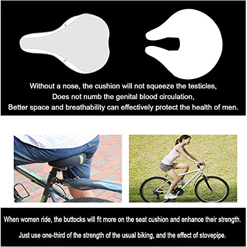 ✔. Design ergonomico: il design senza naso del nostro seggiolino per bicicletta offre una migliore ventilazione e più spazio per l'esercizio. Pertanto, la coscia può muoversi liberamente durante la guida senza sfregare la coscia. Il nastro riflettente sul retro del seggiolino per bicicletta senza naso rende i viaggi notturni più sicuri.