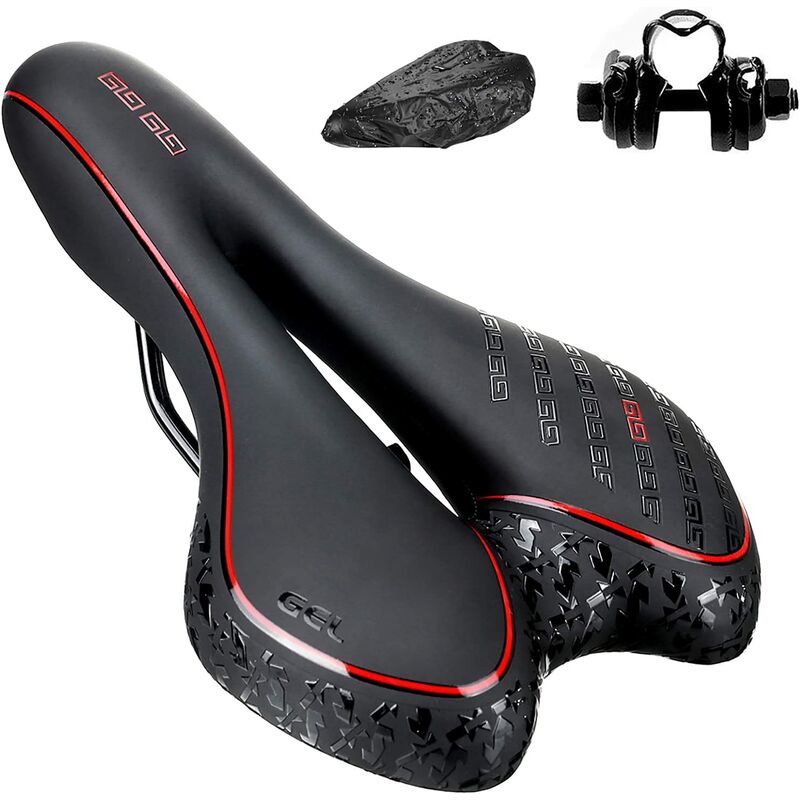 Gel di pelle sintetica e grasso artificiale. - - La superficie della sella della bicicletta è realizzata in pelle PU antiscivolo e resistente all'usura. Lo strato interno è gel di olio artificiale. Riducendo la pressione dell'osso pubico del 40%, il materiale ha una vestibilità comoda e sciatica. La pelle PU e il gel di olio artificiale possono offrire il massimo comfort e prevenire il dolore durante il ciclismo. 【 sfiato cavo】 - La stretta curva curva arrotondata nella parte anteriore riduce efficacemente il dolore al nervo sciatico. La sella della bicicletta adotta un design centrale cavo, quindi la sella ha uno spazio di ventilazione sufficiente, dissipa il calore più velocemente e può ridurre l'umidità causata dalla sudorazione durante la guida a lungo termine. La circolazione dell'aria rimane asciutta per una guida più confortevole. 【 Struttura di supporto a molla pieghevole】-La struttura di supporto a molla pieghevole nella parte inferiore garantisce una forte sospensione e una