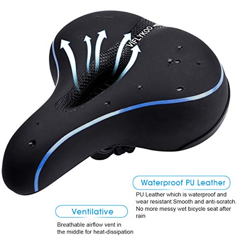 【Design ergonomico】 Seggiolino per bicicletta morbido, elastico, antiscivolo, resistente all'usura, impermeabile: la migliore protezione per i glutei, il cuscino del sedile della bicicletta è realizzato con un cuscinetto in memory foam spesso, ampio e ad alta densità, molto morbido, diciamo addio al dolore e goditi il divertimento in bicicletta.