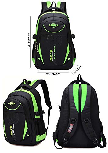 SellerFun Zaino di Nailon Superleggero con 2 Tracolle-Borsa Della Scuola Studentesca per Ragazzi e Ragazze(Verde)