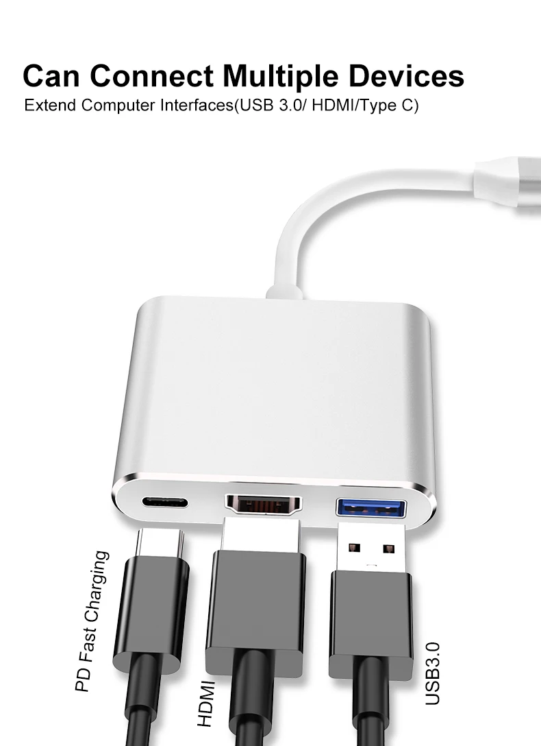 Hot Selling New Arrival 3 in 1 Adapter USB 3.1 Type C to Hdmi+USB 3.0+Type C Hub usbc hub laptop accessories