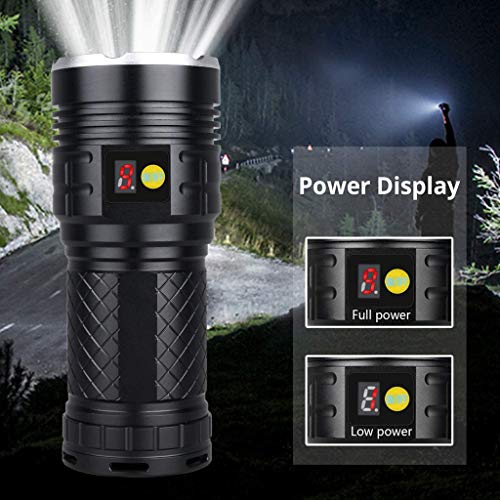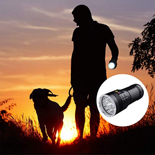 Semlos LED taschenlampe 10000 Lumen, 12xLEDs taschenlampe Extrem Hell, USB Wiederaufladbare, 4 Modi, Power-Display-Funktion(Schwarz)