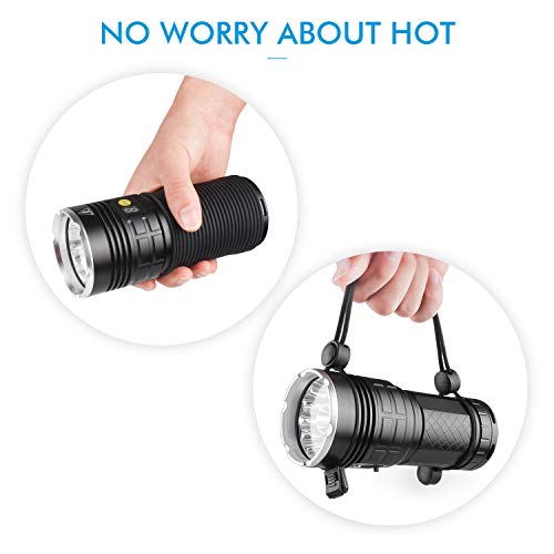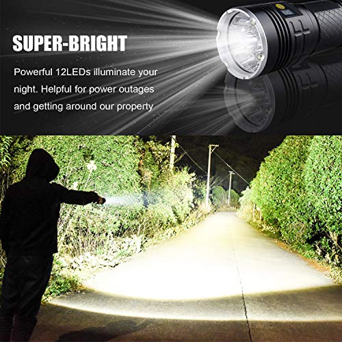 【Torcia Ultra Luminosa】- 4 modalità di illuminazione (alta/media/bassa/stroboscopica) soddisfano le tue diverse esigenze. 12 lampadine a LED CREE XM-L T6 sono abbastanza luminos3 da illuminare fino a 300-500 metri di distanza. Una grande luce per passeggiate con il cane, campeggio, escursionismo, arrampicata, mountain bike, canottaggio, pesca, interruzioni di corrente, emergenze, esplorazione di grotte, viaggi di alpinismo, missioni di soccorso, attività all'aperto e al chiuso.