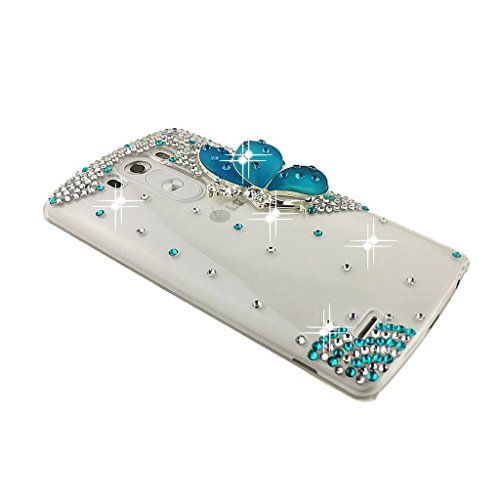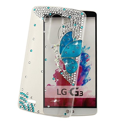 Semoss 3D Bling Gliter Blu Farfalla Custodia in Strass per LG G3 Cristallo Diamante Bumper Shell Cover Rigida + Protezione Schermo