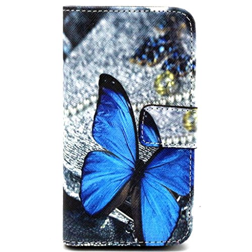 Semoss Set 2 in 1 Composto Retro Blu Farfalla e Fiori Custodia in Pelle per Nokia Lumia 635,Nokia Lumia 630 Portafoglio Flip PU Cuoio Cover funzione sostegno con Protezione Schermo,Scomparto per Carte di Credito