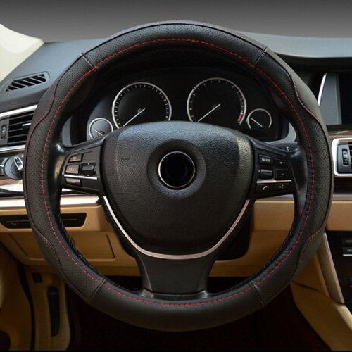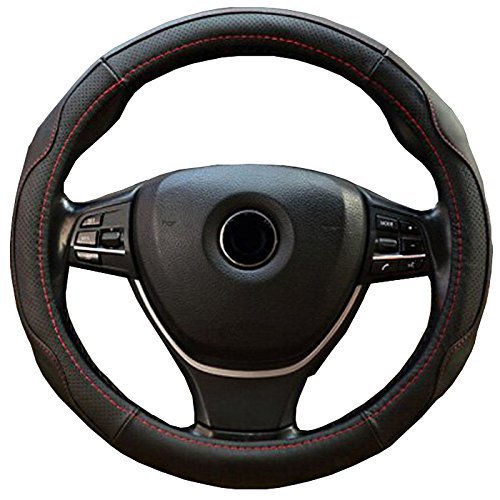 Semoss Coprivolante Auto in Vera Pelle con Anti Scivolo Rosso Line,Colore: Nero,Dimensione:37-38cm