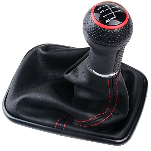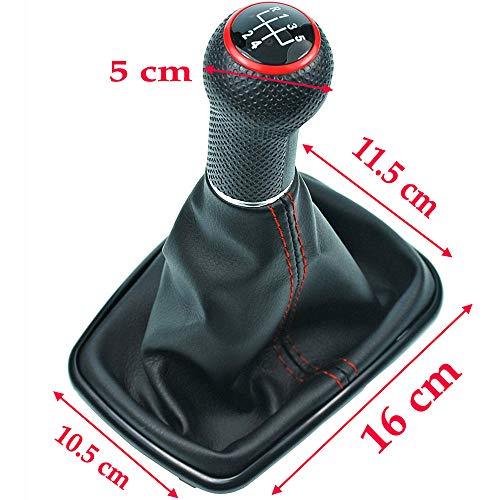 Semoss Cuffia con Pomello Leva Cambio 5 Marce Universale in Pello Rosso Cuciture per Auto