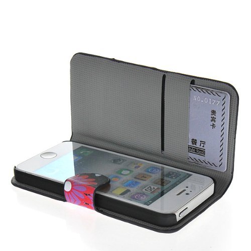 Semoss - Custodia per Apple iPhone 5S/5G, in cuoio bicast, funzione sostegno, scomparto per carte di credito, strass, motivo floreale multicolore