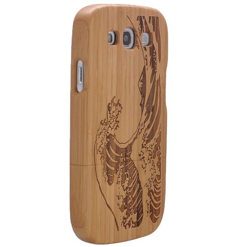Semoss Custodia in Bambu Fatta a Mano Bumper Cover Rigida con Onda del Mare Motivo per Samsung Galaxy S3 i9300 i9305 / Galaxy S3 Neo Naturale Bamboo Case Cover,Realizzata a Mano