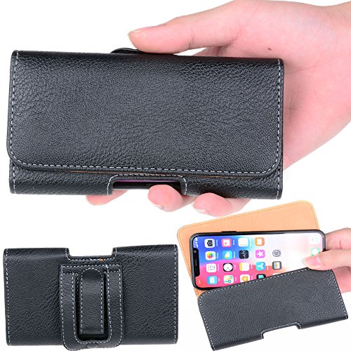Semoss Custodia da Cintura per iPhone X/iPhone 10 Cover Pelle Cellulari Universali Wallet Portafoglio Cuoio Flip Case Cover Sport con Clip e Chiusura Magnetica Nero 15 X 8 cm