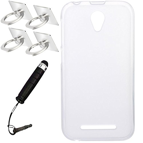 Semoss 3 in 1 Set Custodia Silicone Rubber Cover per ZTE Blade A110 / Blade L110 Ultra Slim Hybrid Protettivo TPU Bumper Case Gel con Anello Supporto e Mini Touch Pen,colore:Trasparente Bianco