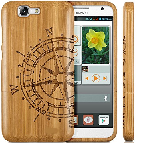 Semoss Fatta a Mano Bussola Custodia in Bambu per Huawei Ascend G7 Ultra Slim Thin Naturale Bamboo Legno Bumper Protettivo Cover Rigida,Realizzata a Mano