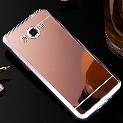 Semoss Lusso Ultra Slim Thin Bling Strass Custodia Specchio in TPU Silicone per Samsung Galaxy A5 2015 Mirror Protettivo Metallo Bumper Cover Rigida - Rose