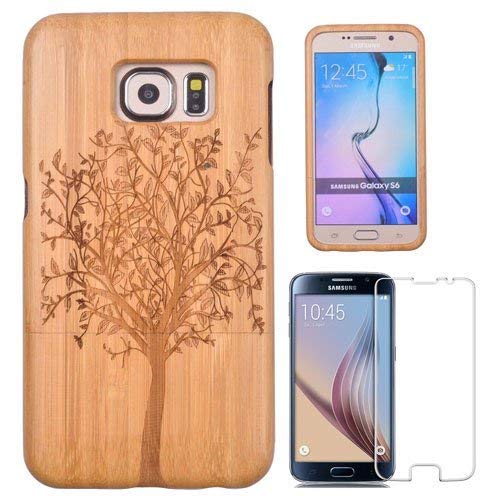 Semoss 2 in 1 Set Naturale Bambu Custodia Albero per Samsung Galaxy S6 Legno Protettivo Cover Rigida Fatta a Mano Wood Bamboo Bumper Cover con proteggi schermo