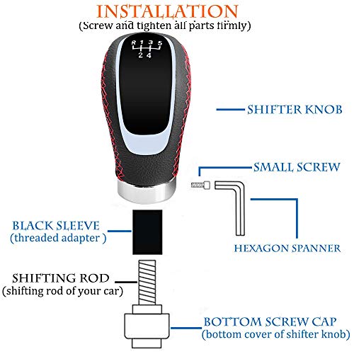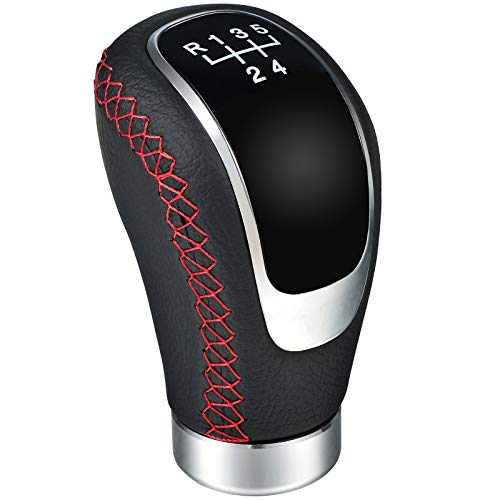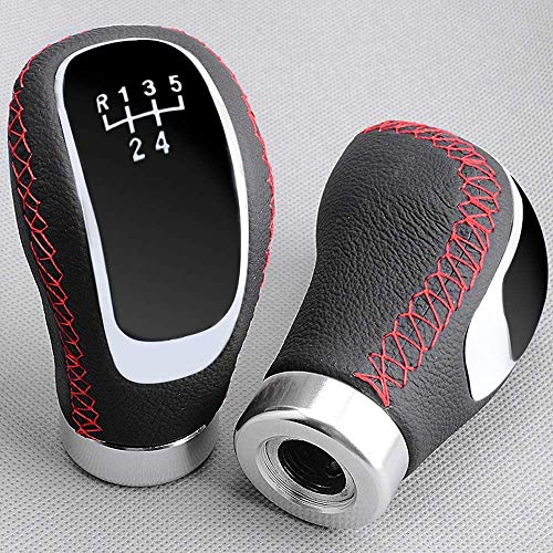 Semoss Pezzi Ricambio Pomello Cambio Pelle Universale 5 Marce Manuale Manopola Leva con Convertitore 8mm 10mm 12mm per Auto SUV Furgoni,Rosso Cuciture