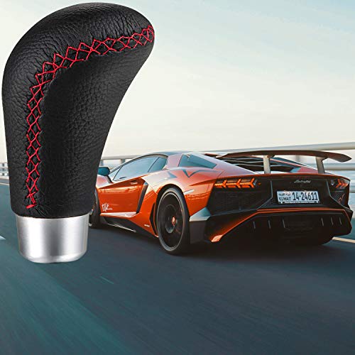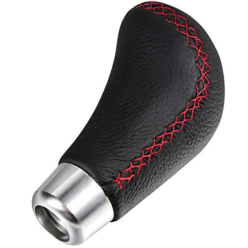 Semoss Universale Pomello del Cambio Auto in Vera Pelle con chiave e vite,Sostituzione Shift Manuale,nero e rosso line motivo