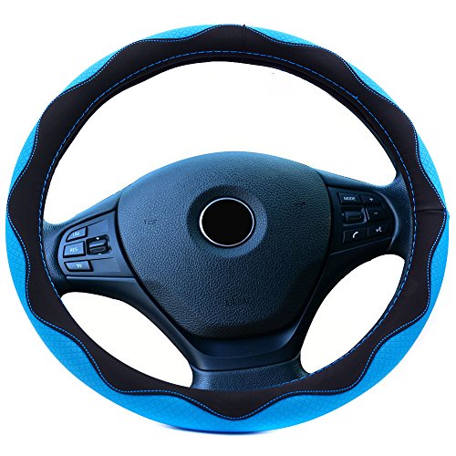 Semoss Universale Anti Scivolo Coprivolante in Agnello Pelle Cover Volante Auto,Dimensione:M,37-38cm,Colore:Blu