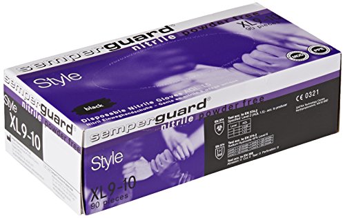 SemperGuard Style AQL Guanti in nitrile monouso, misura XL (9-10), Nero, Scatola da 90 pezzi