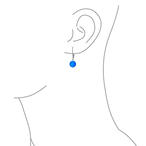 Semplice Agata Blu Gemma Rotonda Dangle Leva Indietro Orecchini A Sfera Per Le Donne .925 Sterling Silver
